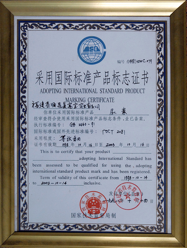 國際標(biāo)準(zhǔn)產(chǎn)品標(biāo)志證書